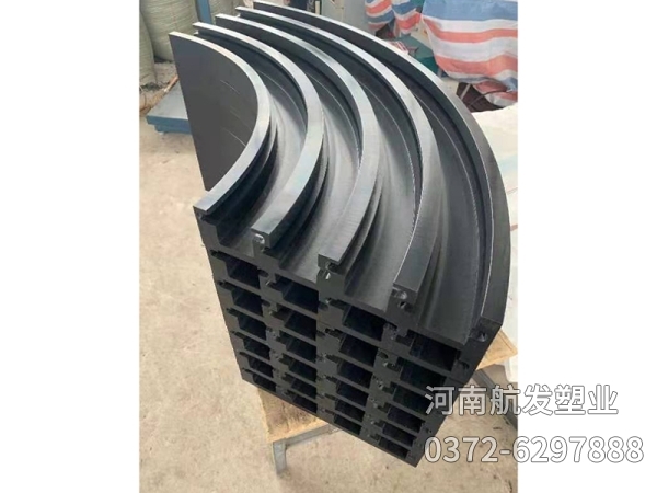 高分子聚乙烯彎道具有普通聚乙烯和其它工程塑料好的耐磨性、耐沖擊性、自潤滑性、耐腐蝕性。